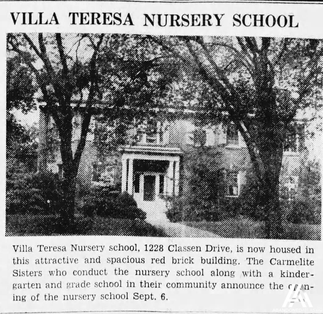 To accommodate an ever-growing number of students, the Carmelite Sisters expanded the boundaries of Villa Teresa School by purchasing adjacent lots in Block 2. On December 31, 1940, the Sisters purchased the former James Anderson residence at 1228 Classen. The Sisters promptly converted it to a nursery for two-year-old children and below.